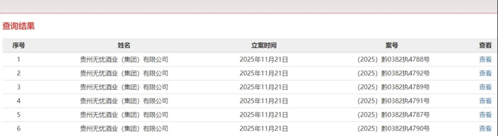 “川酒十朵小金花”之一仙潭酒厂的纠纷尚无定论,茅台镇的无忧酒业成了又一家爆雷的酱酒企业。中国执行信息公开网披露,贵州无忧酒业(集团)有限公司于11月21日新增六则被执行人信息,执行法院为仁怀市人民法院,总执行标的约为6255.51万元,但具体原因并未披露。