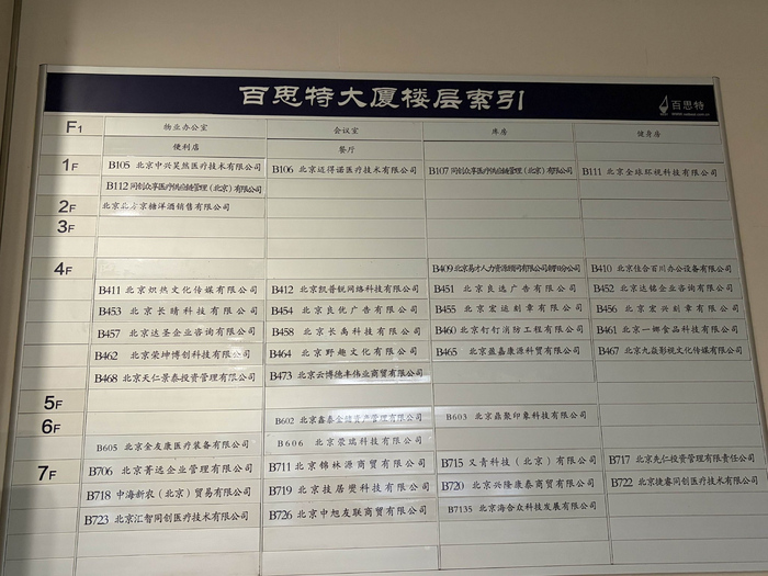 但界面新闻记者并未在展示板上,找到光和谦成的名字及B6221房间。这座大楼的六层,有多个类似办公室的房间,但界面新闻未见有人在场。