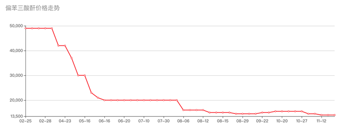 另有业内人士向界面新闻透露,据了解,安徽亿成此前利用现有的生产装置,趁2024年产品报价大涨时恢复了生产,这部分的产能投放,也缓解了市场供需紧张的局面,“根据往年经验,偏苯三酸酐的报价也就一万多的水平”。
