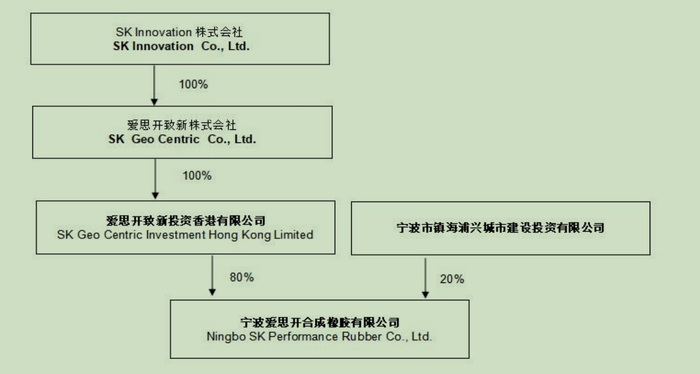 通过天眼查股权关系穿透,韩国第二大企业SK集团通过SK香港间接持有其80%股权;另外,宁波市镇海区国资通过宁波市镇海浦兴城市建设投资有限公司持股约18.75%。