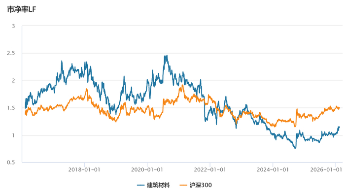 从估值维度看,当前中证全指建筑材料指数市净率(LF)仅1.15%,处于近十年25%以下分位,部分水泥龙头市净率已跌破0.8倍,这意味着市场给予此类资产的估值已充分甚至过度反映了悲观预期,具备充足的安全边际。