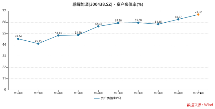 更值得关注的是,资产负债率也攀升至上市以来最高位,首次突破70%关口,达73.62%。鹏辉能源急需外部“输血”。