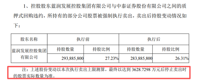 图片来源:深交所网站截图千万股遭强制卖出,控股股东持股降至26.31%