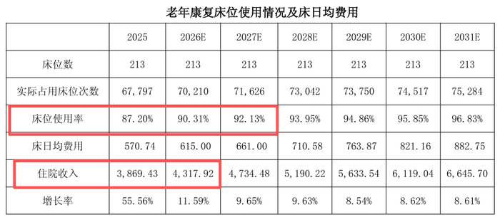 根据莎普爱思公告预测,老年康复病房床位使用率将从2025年的87.20%升至2031年的96.83%。