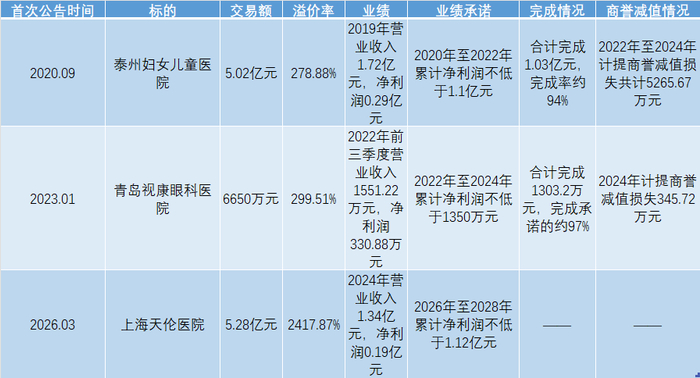 不仅未完成业绩承诺,泰州妇女儿童医院在承诺期结束后严重业绩变脸,2023年至2024年,该医院净利润为2868.56万元和819.40万元。