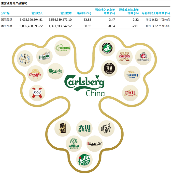 自2020年完成与嘉士伯中国资产的重大重组后,重庆啤酒形成了“国际品牌+本土品牌”的双轮驱动格局。然而,近年来两大引擎的转速差异越来越大。