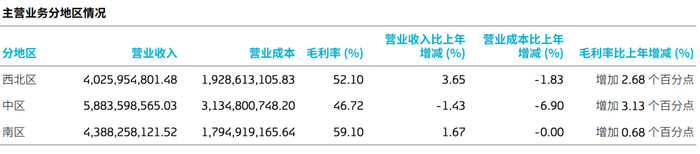 图片来源:重庆啤酒2025财报截图区域市场方面,重庆啤酒将全国市场划分为西北区、中区、南区三大板块,2025年三大区域表现呈现明显差异,西北区域受益于旅游市场带动,营收同比增长3.65%至40.26亿元;南区受益于嘉士伯品牌的良好表现,实现营收43.88亿元,同比增长1.67%;而作为核心市场的中区,以重庆大本营为核心,实现营收58.84亿元,同比减少1.43%,已连续两年出现营收负增长,2024年中区营收同比降幅为1.88%,核心市场的承压态势明显。