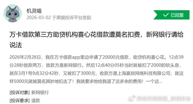 对新网银行而言,近万条投诉背后折射的,不仅是合作机构管理的执行缺漏,更是合规透明度与消费者权益保护之间的矛盾。对于这家曾以创新著称的互联网银行而言,如何在保持商业可持续与履行社会责任之间找到平衡,如何从制度建设到执行层面真正补齐合规短板,新经济观察团将持续关注。
