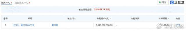 此外,身为龙大美食控股股东的蓝润发展控股集团有限公司(下称“蓝润发展”)自身状况也并不乐观。2月6日,蓝润发展刚刚被济南市市中区人民法院列为被执行人,被执行金额为3286.69万元,蓝润发展集团创始人戴学斌在2025年12月24日被列为被执行人,被执行金额高达28亿元,且戴学斌已接连多次被限制高消费。