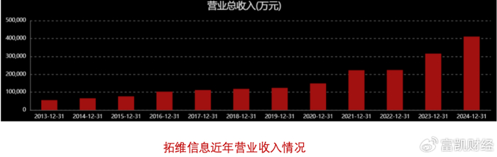 回溯过去十年历程,拓维信息仅在2022年营收出现小幅下滑,营业收入从2015年的7.7亿元,一路攀升至2024年的41亿元。