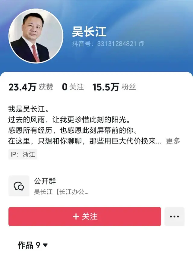 12月4日,雷士照明创始人吴长江现身抖音,用“9条视频涨粉15.5万”的表现宣告正式回归。