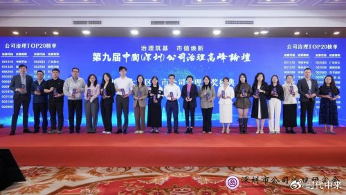 本次最重要的奖项——湾区上市公司公司治理Top20,分别由:中国平安、绿色动力、华特气体、平安银行、广聚能源、华润三九、招商蛇口、顺络电子、拓邦股份、茂硕电源、广东宏大、鹏鼎控股、日丰股份、科安达、振邦智能、华测检测、佳士科技、艾比森、胜宏科技、康泰生物等企业获得。