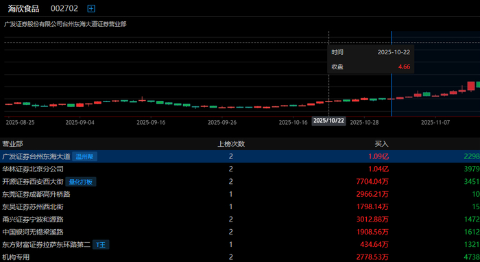 落实到执行层面,还是资金买账,量化打板、T王都来拉抬。正所谓众人拾柴火焰高,合力作用最终把海欣食品推了上去。