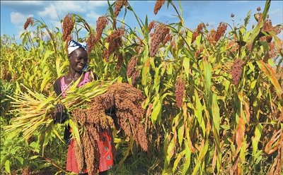 乌干达首都坎帕拉郊外,在中国农业专家的技术指导下,当地高粱获得大丰收。 本报记者 黄培昭摄