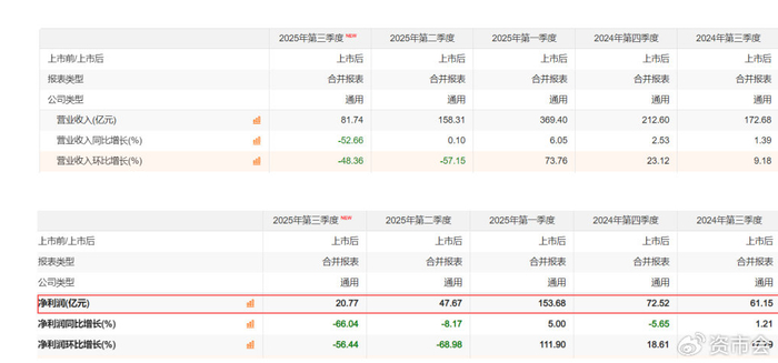 今年第三季度营收相较去年同期的172.7亿元暴跌近53%,成为今年业绩下滑的元凶,也创下1998年上市以来单季度最大跌幅。