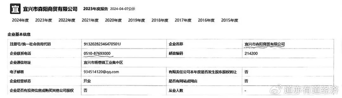 挺耐人寻味的是,在可查到的公开信息里,宜兴森阳和中超集团的企业联系电话和电子邮箱曾经共享过。