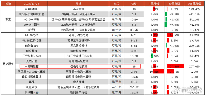 首先,全球对于锂电池和储能在需求端的持续增加,会带动相关化工板块上涨。因为磷化工、氟化工是锂电池的上游资源,为锂电池提供关键原材料,六氟磷酸锂更是锂电池的核心材料。