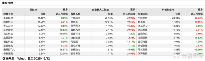 可见,半导体在科创AI中占比较高,通信设备在创业板人工智能中占比较高,而科创创业AI则平衡了两者行业占比情况!