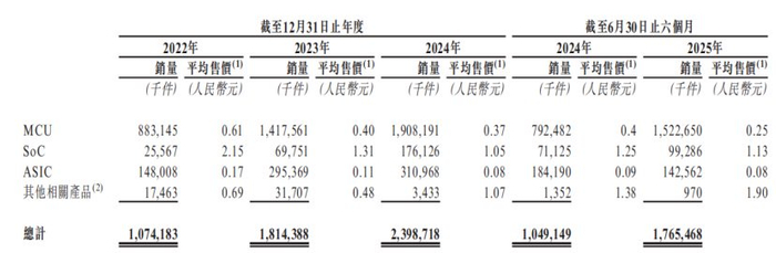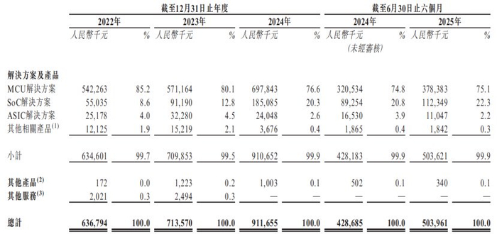 报告期内,中微半导的收益主要来自MCU,2022年MCU的收入占比为85.2%,不过2025年上半年降至75.1%,SoC的收入占比则由8.6%提升至22.3%。