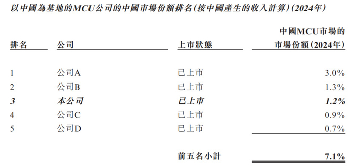 以中国为基地的MCU公司的中国市场份额排名,来源:招股书