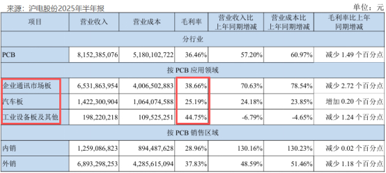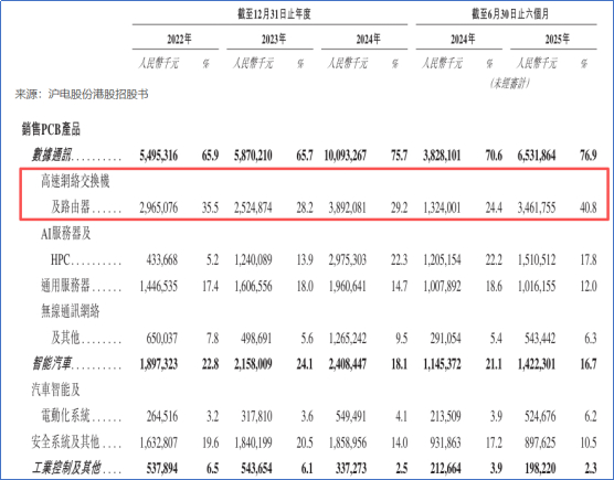 数据通讯板(核心利润引擎):2025年上半年营收65亿元,占PCB业务的绝对大头。这类产品用于AI服务器、高速交换机/路由器,需要超高层数(动辄二三十层)、特种高频材料和极其复杂的设计,技术壁垒极高,因此毛利率也高达38.66%。