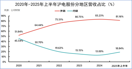 这种基因在其市场结构巨变中体现得淋漓尽致:2020年内外销几乎平分秋色(外销51.84%,内销45.54%)。2025年上半年外销占比已飙升至81.16%,内销则降至18.84%。