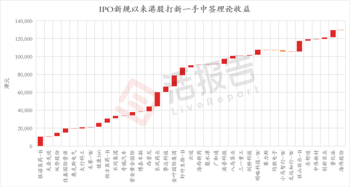 若以首日开盘价卖出,年内港股打新中签一手的累计账面收益(不计手续费)可达19.14万港元,平均每只新股获利2150港元。新规之后打新收益颇丰,平均每只可赚3500港元。不过由于绝大多数新股均采用机制B分配方式,散户打新保证中签的难度很高。