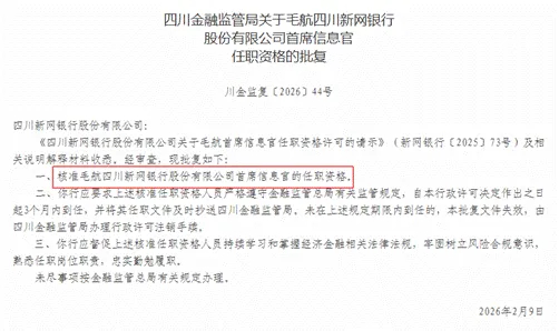 2026年2月,新网银行的管理层又有了新的变动。监管核准毛航新网银行首席信息官的任职资格。这意味着,深耕金融科技领域多年的毛航,将以更高层级管理角色,持续推动新网银行数字化与智能化建设。