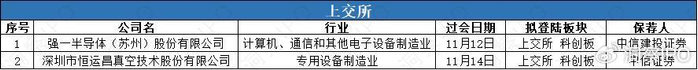 11月11日-11月17日,上交所科创板有2家公司过会;深交所无公司过会。
