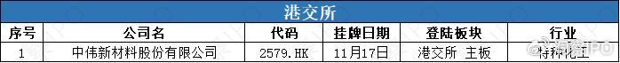 11月11日-11月17日,港交所主板有1家公司上市。