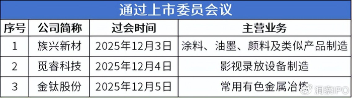 12月3日,在2025年第38次审议会议中,长沙族兴新材料股份有限公司(简称:族兴新材)通过上市委员会。