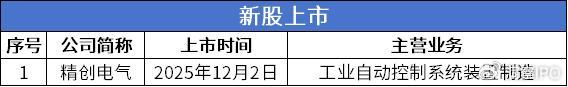 12月1日-12月7日,北交所有1家公司上市申请获北交所受理。