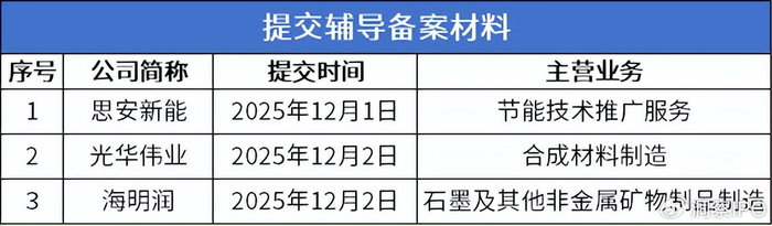 12月1日-12月7日,北交所有3家公司提交辅导备案材料。