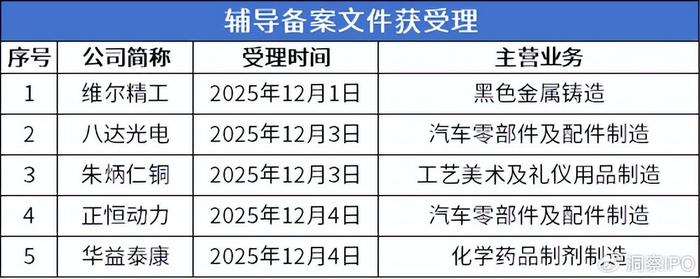 正恒动力公告显示,2025年11月,公司向四川监局报送了辅导备案申请材料,辅导机构为广发证券。