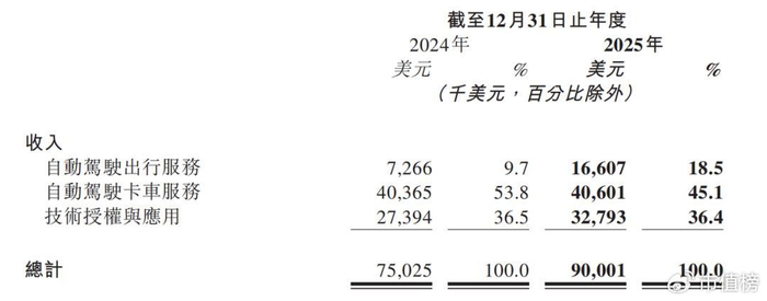 从全年来看,自动驾驶出行、自动驾驶卡车、技术授权与应用的增速分别为128.5%、0.6%和19.7%。