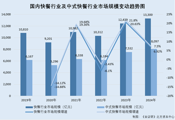 1.3 所处的中式快餐市场规模增速坐“过山车”,2024年由2023年的21.8%下滑至7.5%