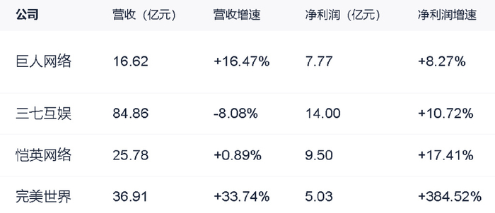 可以看出,完美世界凭借384.52%的净利润增速,遥遥领先其他对手。