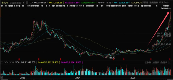 2025年以来,吉比特又进入到大涨轮回中,年内涨幅高达220%左右。