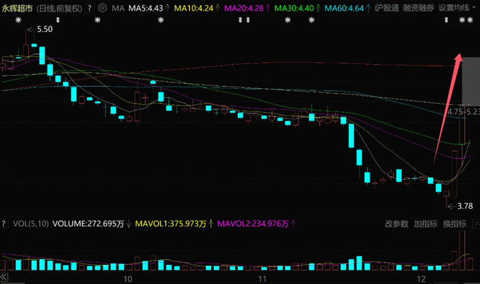 不过也应该看到,在三连板之前的一段时间,也就是11月18日-12月4日,永辉超市股价出现了连续大跌,从4.67元跌到3.78元,短期跌幅将近20%,并创出年内股价新低。