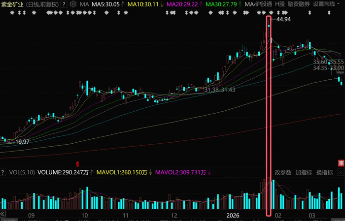 1月29日,紫金矿业振幅超过8%,成交额333亿元,创历史新高;洛阳钼业振幅超过12%,成交额177亿元,创历史新高;江西铜业振幅超过15%,成交额113亿元,创历史新高。