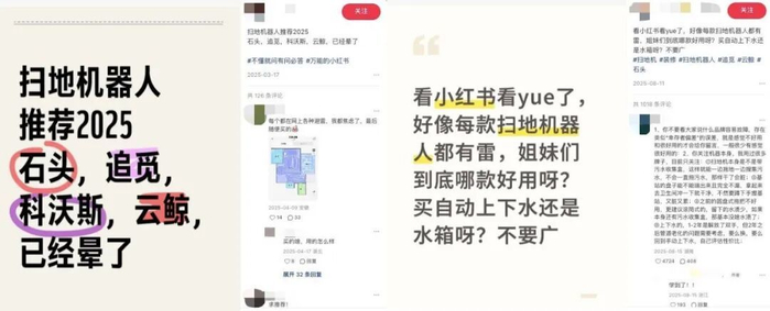 但如果你去小红书搜这四个品牌,从硬件故障、地板划伤到售后争议,“避雷帖”几乎无一缺席: