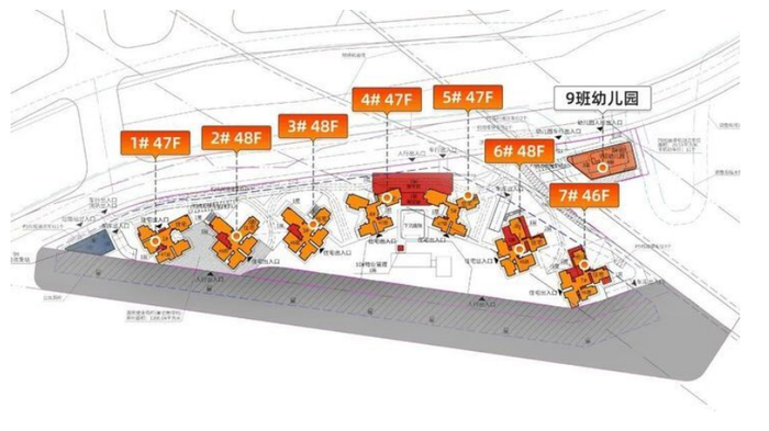 根据规划,项目总用地面积6.71万㎡,计算容积率建筑面积15.17万㎡,绿地率35.1%,建筑密度25%,将打造7栋46-48层的超高层住宅,产品定位刚改。