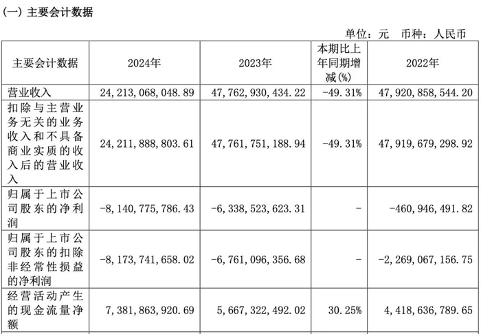 2024 年度,首开股份实现营业收入242.13亿元,同比下降 49.31%;归属于上市公司股东的净利润为-81.41亿元,同比去年-63.39亿元。