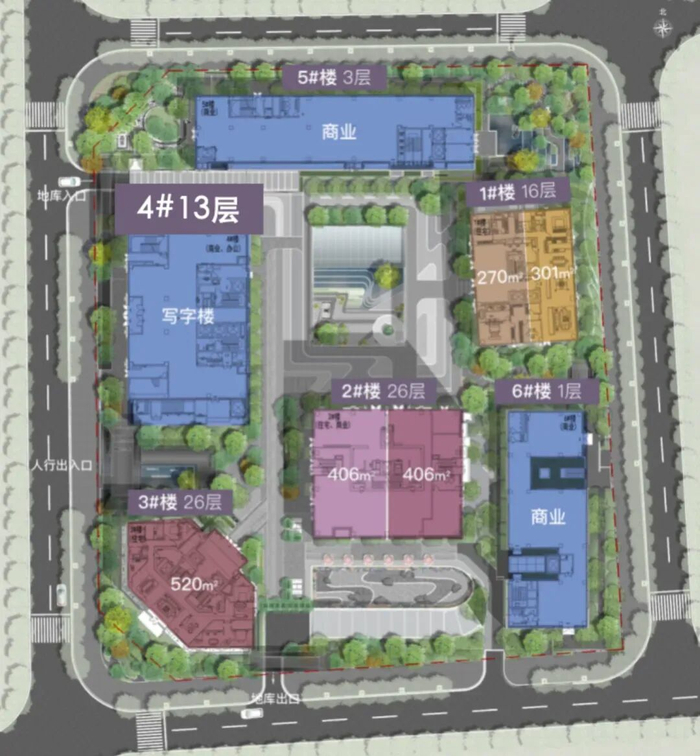 这栋楼5层及以下是商业,6层及以上是住宅,主力户型为406㎡,拟售均价为14.79万元/㎡,全小区最低。