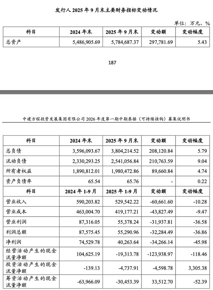 2025年1-9月,中建方程营业收入52.95亿元,同比减少10.28%;同期净利润4.03亿元,同比下降45.98%。
