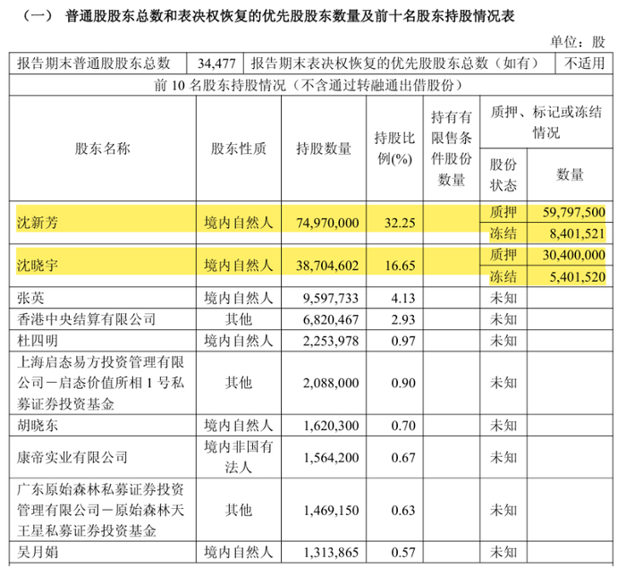 财务风险亦不容忽视。截至2025年三季度,公司资产负债率达65.55%,虽较去年同期的68.77%有所下降,但仍显著高于行业平均的44.84%,显示出公司面临的偿债压力相对较大。更值得警惕的是,公司控股股东沈新芳、沈晓宇持有的公司股份累计质押数量占其合计持股数量的79.35%,占公司总股本的38.80%,高比例股权质押犹如悬在公司头顶的达摩克利斯之剑。