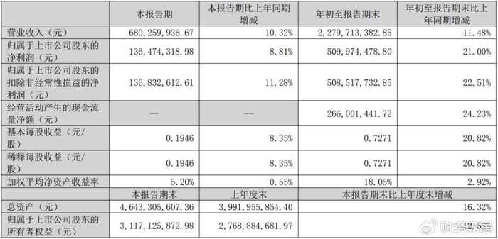 除此以外,佐力药业经营活动现金流也显著改善,前三季度经营活动产生的现金流量净额达2.66亿元,同比大幅增长24.23%。