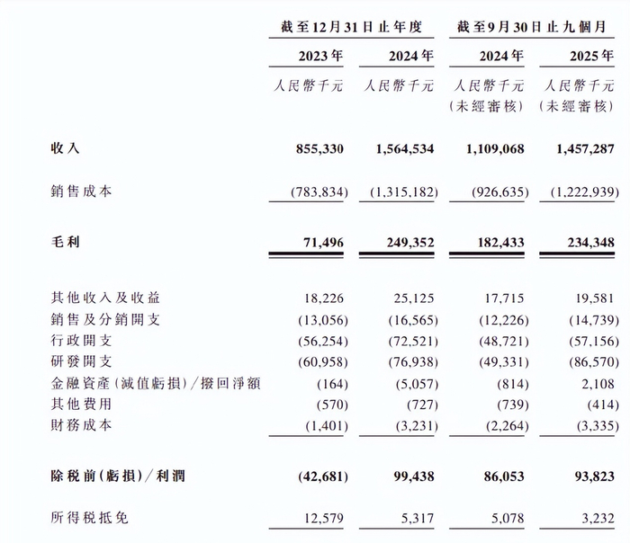 正经社分析师注意到,从基本面看,新思考电机的业绩不可谓不亮眼。招股书显示,2023年、2024年及2025年前三季度,收入分别为8.55亿元、15.65亿元及14.57亿元,利润从2023年亏损3010万元跃升至2025年前三季度盈利9705万元。