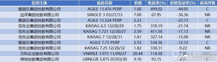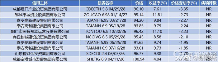 地产板块方面,万科企业VNKRLE 3.975 11/09/27和VNKRLE 3.5 11/12/29(1180.9万美元和660万美元),新世界发展VDNWDL 9 PERP(624.5万美元),万达商业DALWAN 11 02/13/26(250万美元),龙湖集团LNGFOR 4.5 01/16/28(250万美元)。