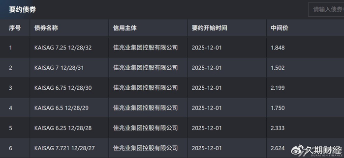 佳兆业集团发布公告,对多系列票据发起同意征求,拟修订条款以股代息并发行新股份。同意征求将于12月17日届满。